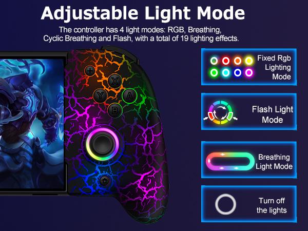 Switch Controller for Switch/OLED, (No Drift, No Deadzone) Hall Effect Joystick Wireless Switch Controller With 9 Lights Color
