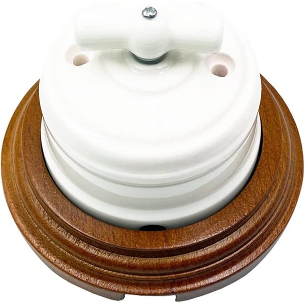 Switch Encoder Home Improvement European Ceramic Rotary Switch Smooth Insulating Wall Light Knob Switch Black White Brown 10A 250V (Color : White with Brownbase)