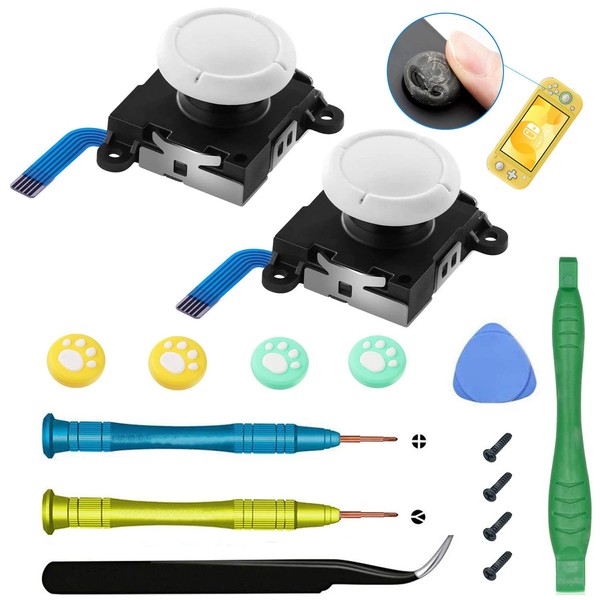 Switch Lite アナログジョイスティック 交換用, 2個 ジョイスティック 右/左 センサ 修理工具キット付き,トライウィング、クロスドライバー、こじりツール+ 4つのサムスティックキャップを含む