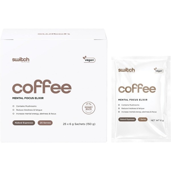 Switch Nutrition Coffee Mental Focus Elixir Naked Espresso Sachets 6g X 25