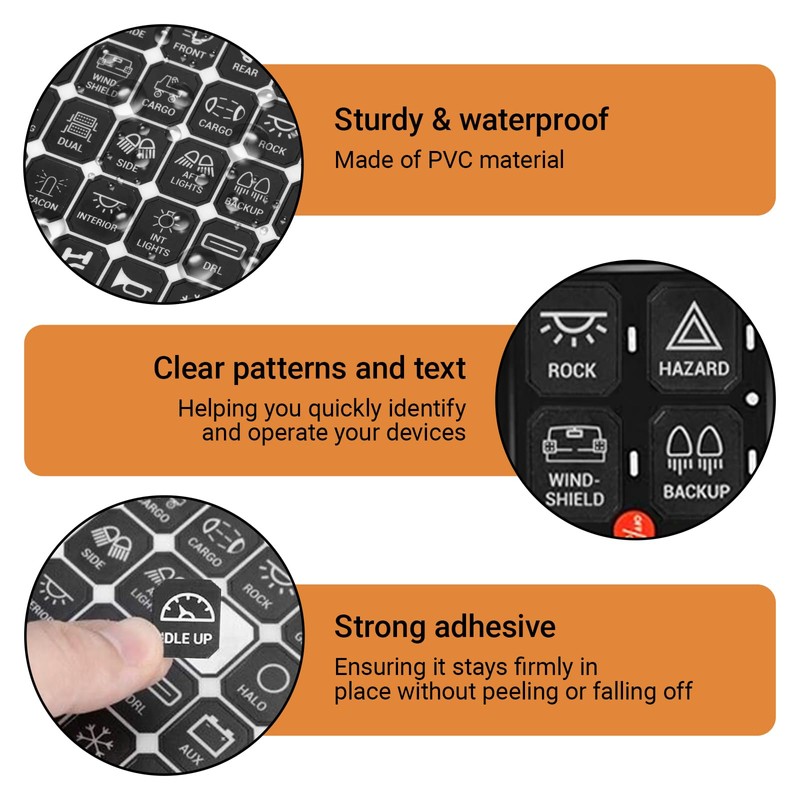 - Each sticker is backed with strong adhesive, ensuring it stays firmly in place without peeling or falling off. Clear patterns and text make them easy to read, helping you quickly identify and operate your devices.