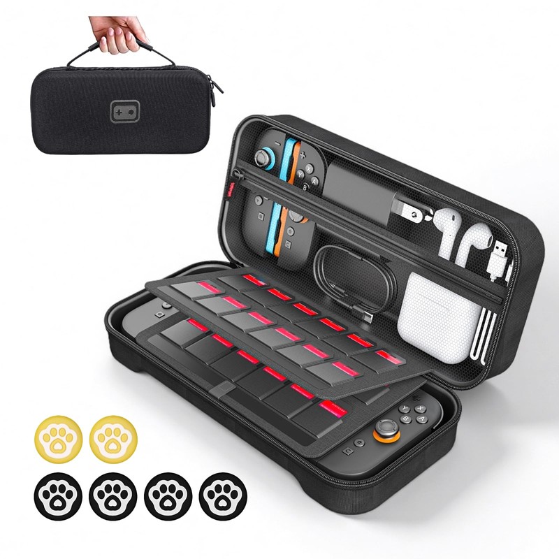 - 【Switch 2 Complete Protection & Large Storage Capacity】Specially designed for Nintendo Switch 2 cases! Made of high density EVA + nylon material that completely seals out shocks, water and dirt. 2 switch case large capacity design allows you to store 2 switches, Joy-Con, grip, dock, 24 game cards, AC adapter, Joy-Con strap, charging cable, earphones and other small items in one place! Ready for travel or business trips. Not compatible with Switch Lite/OLED/previous models