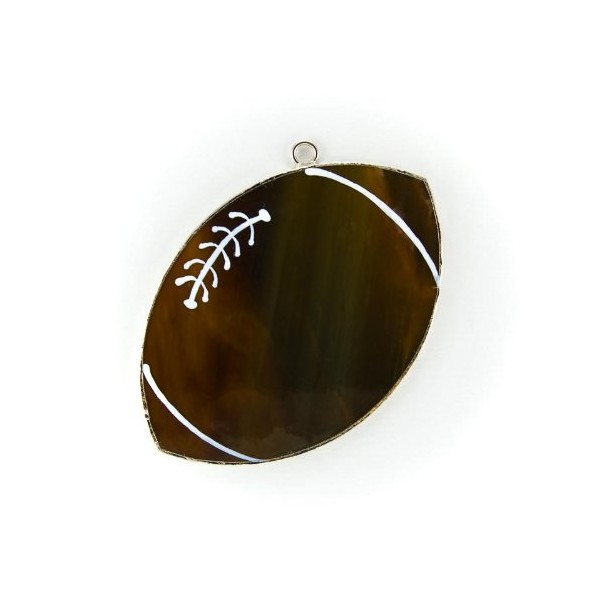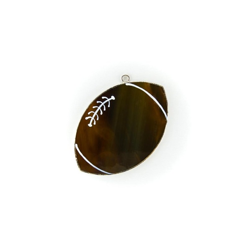 Our Football design measures approximately 3." Tall. Single piece of dark brown Stained glass with hand painted thread. Use this or any of our Stained Glass designs on our patented nightlight plug, Table Stand, Plant Stake, or Suction cup. All Accessories are sold separately. (Plug is not included with glass covers) Switch your style...not your plug --> Please note that each piece of stained glass will vary in color and no two will look exactly alike. .