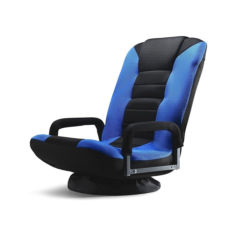 Swivel Gaming Floor Chair - Enjoy 6 Different Positions, Adjustable Lumbar Support, Removable Polyester Cover & Arm Rests, Folds to Store, Stylish Blue with Black Center Stripe