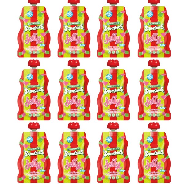Swizls Drumsticks Squashies Sour Apple and Cherry Jelly Pouch 80g (12x Packs)