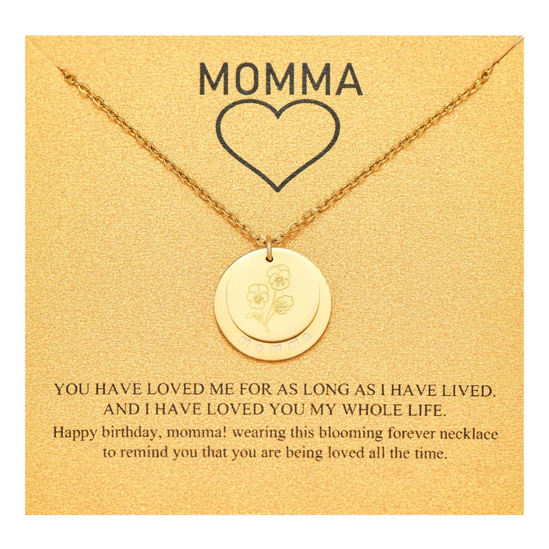 SWNXMG Dainty Gold Birth Month Flower Necklace For Mother'S Day Gifts Happy Birthday Gift For Mom, Stainless Steel, No Gemstone