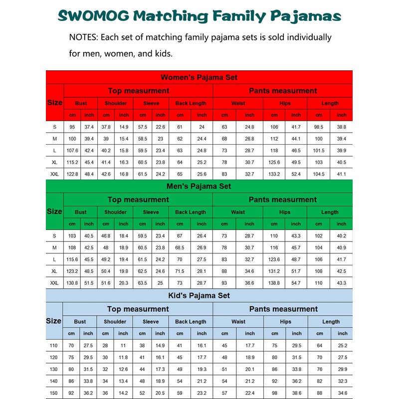 - NOTE: Each set of matching pajamas is sold individually for men, women. Please refer to the size chart on the picture before ordering. And Merry Christmas!