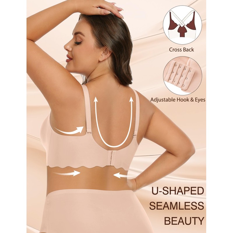 - U-Shaped Back & Full Coverage The U-back with full coverage smooths underarm lines gently provides strong support and prevents strap slippage. Multi-row hook and eye closure accommodates your changing body shape. Wavy edges for breathability.