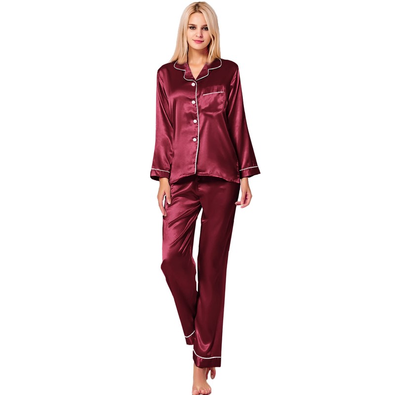 - Occasions: Long-sleeved pyjamas made of silk satin for women, which is suitable for everyday use and easy to combine. Comfortable and suitable for lounging and sleeping, pyjama parties, girls' day, bridal nightwear, indoors, living room, bedroom, hotels, holidays, travel and daily sleepwear.