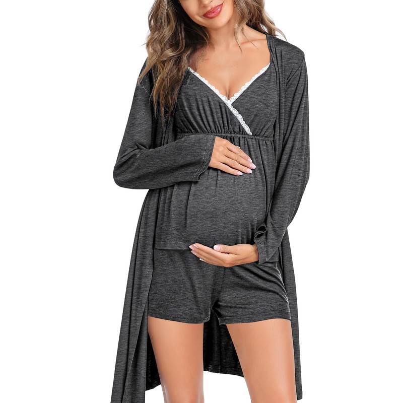 - đăBest Choiceă3 in 1 multipurpose to wear,long sleeve robe,lace nursing top and with Adjustable Button shorts.This pajama robe set is suitable for all stages: pregnancy, labor, delivery, daily wear, breastfeeding or nursing babies.