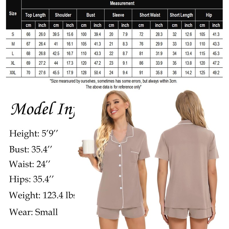 - 2 PIECE PJS SET: Our short sleeved pajamas women include button front tops and elastic waisted pajama shorts. Classic style design, comfortable fit, strong and wear-resistant stitching, bringing you the best comfort during your leisure time