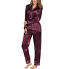 SWOMOG Womens Silk Pyajama Set Satin Pyjamas Long Sleeve Two Piece Sleepwear ...