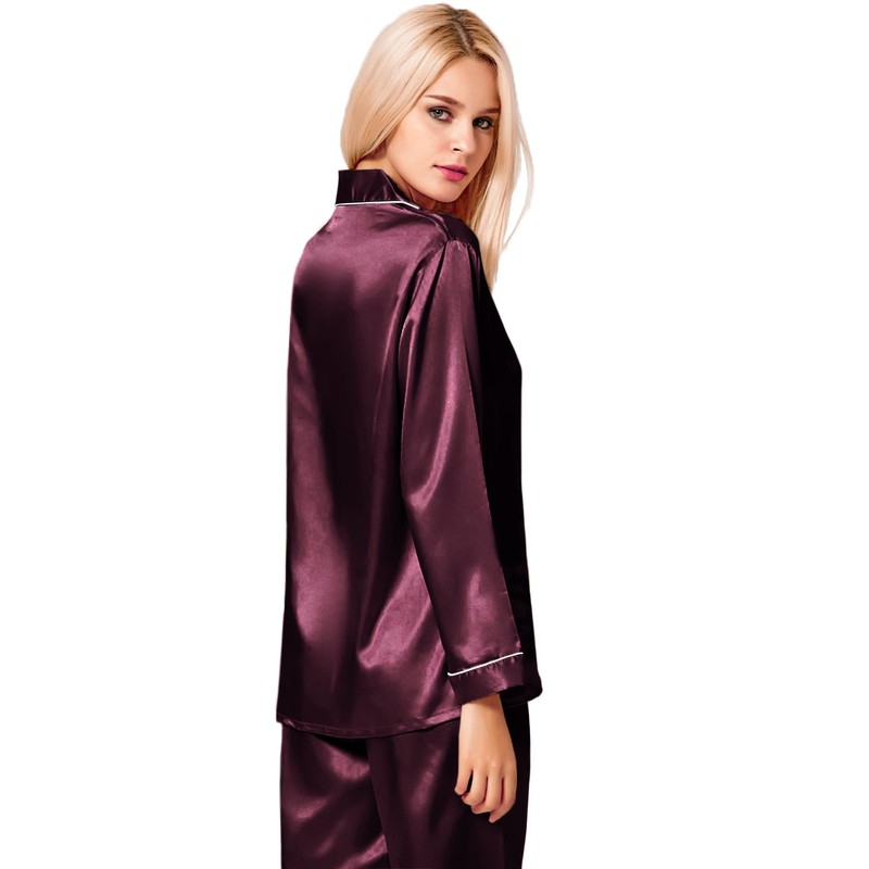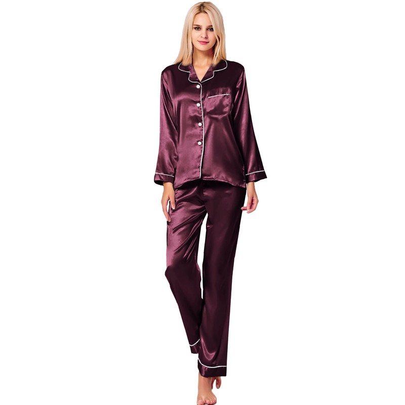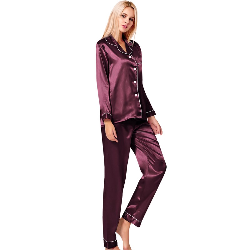 Catch up on sleep in SWOMOG long sleeve soft silk stain womens pyjamas.