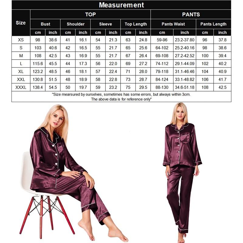 • Occasion:Women's Long Sleeve Silk Satin Pajamas Set, which is suitable for daily wearing and easy to match.Comfortable and suitable for lounging and sleeping,pajama party,girls day,bridal sleepwear,indoor, living room, bedroom, hotel, vocation, travel, and daily sleepwear.