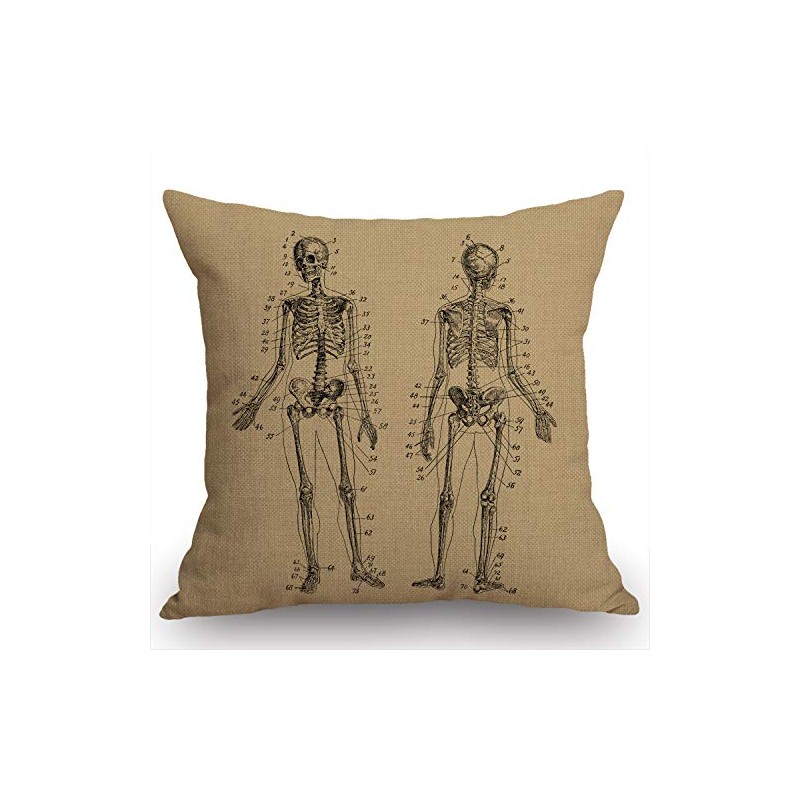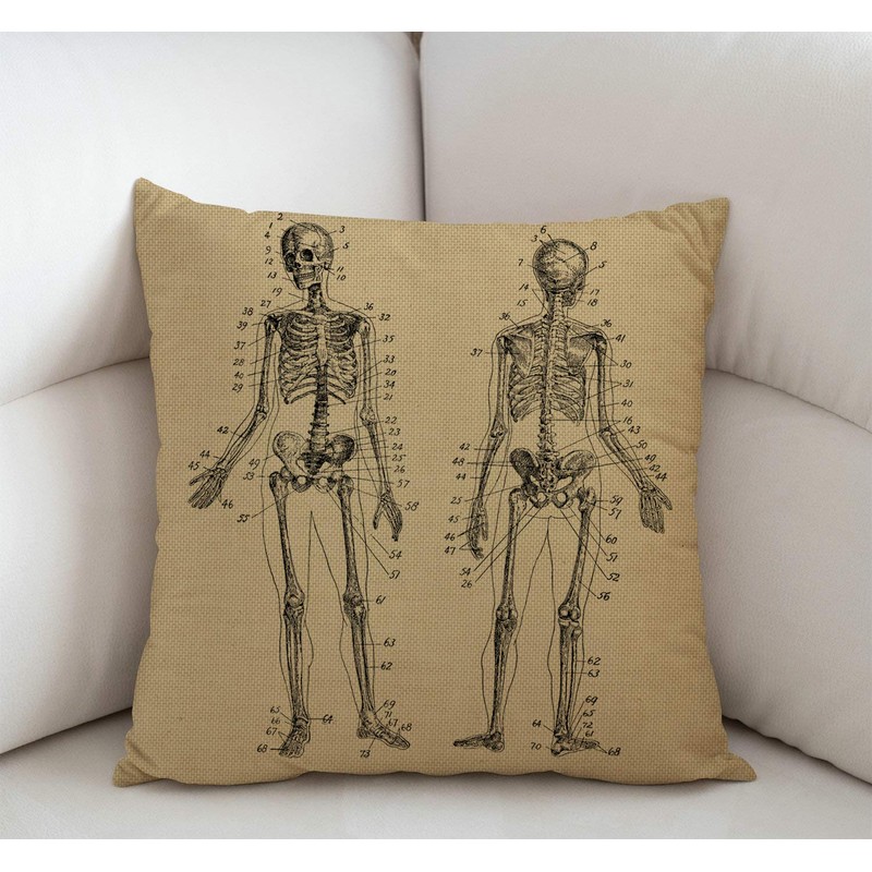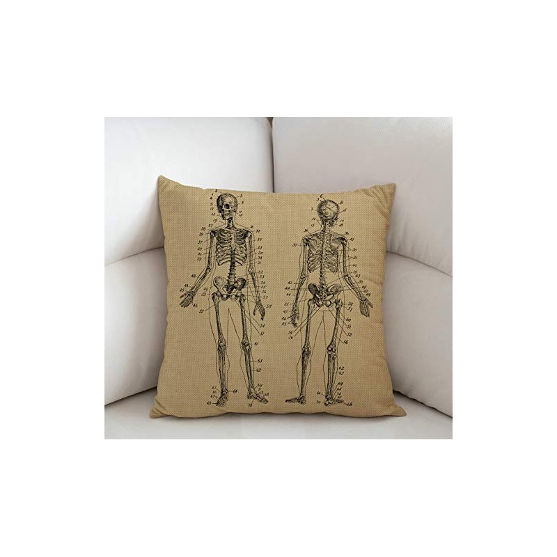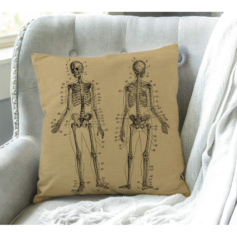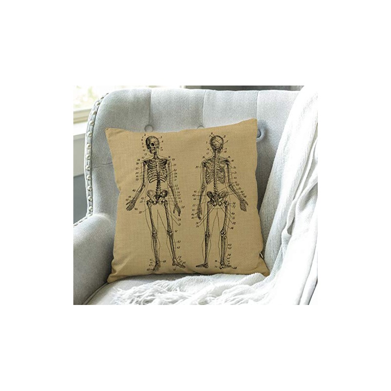 Swono Human Skeleton Throw Pillow Cover Human Anatomy Farmhouse Cushion Case for Sofa Couch 18x18 Inches Cotton Linen