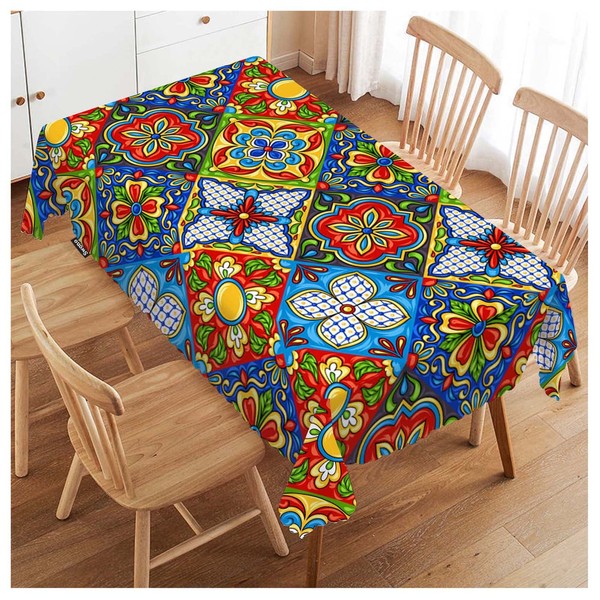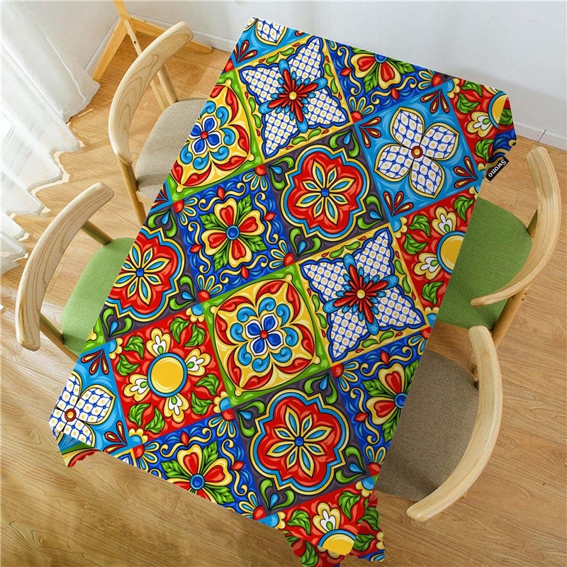 Swono Mexican Pattern Rectangular Tablecloth Ethnic Mosaic Patchwork Mandala Washable Table Cloth Kitchen Dining Room Table Cover for Party Dinner 50x72 Inch Tablecloths