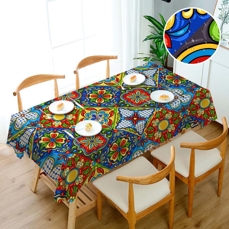 Swono Mexican Pattern Rectangular Tablecloth Ethnic Mosaic Patchwork Mandala ...