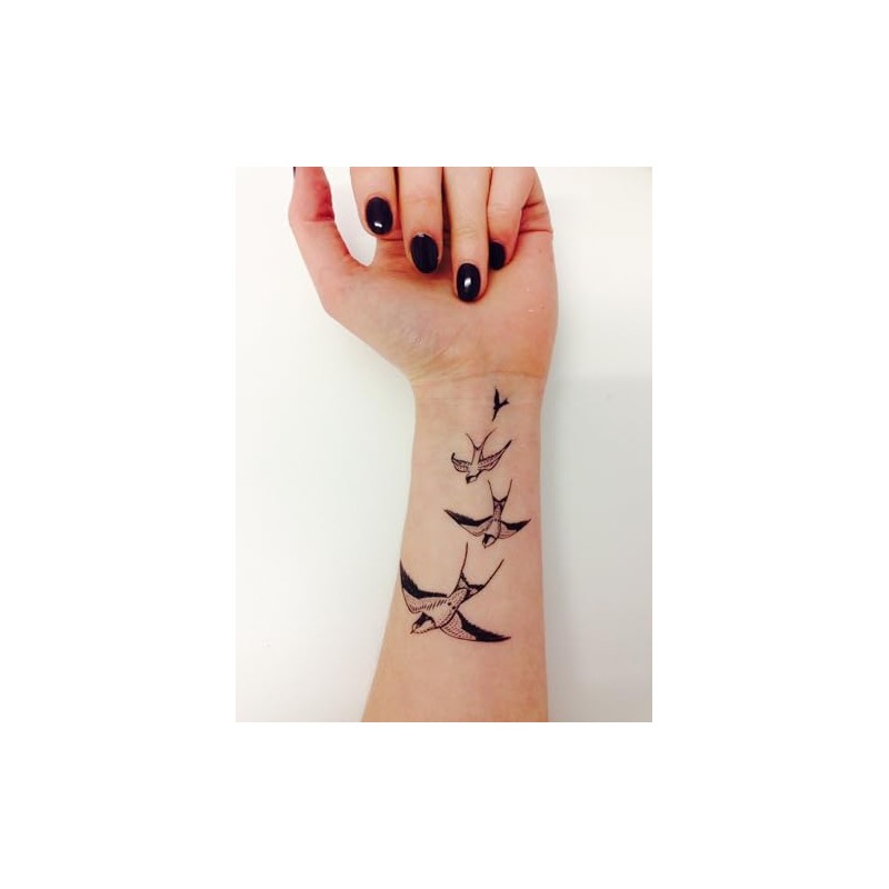 Swooping Swallows Temporary Tattoo – 4x2.5" Flying Bird Design (3 Copies) – Realistic Wrist-to-Hand Placement by Inkwear