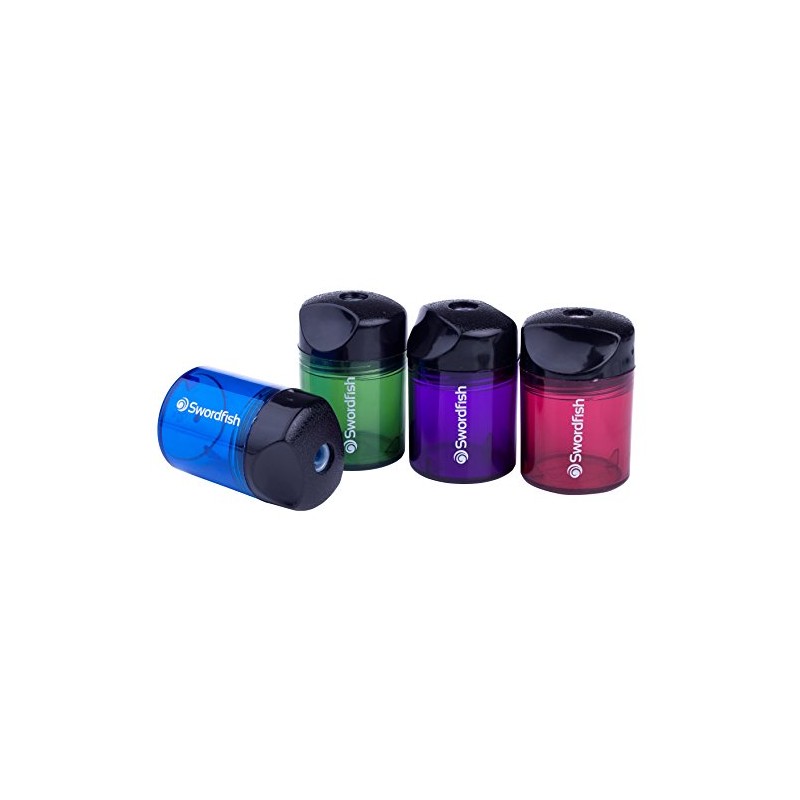 Swordfish ‘Canister’ Pencil Sharpener with Mess-Free Canister [Pack of 10] Assorted Colours [40032]
