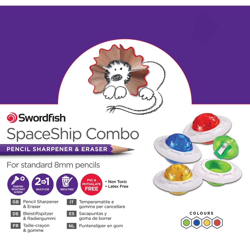Swordfish SpaceShip Combo Pencil Sharpener & Eraser - 40341 - Assorted Colours (Pack of 1)