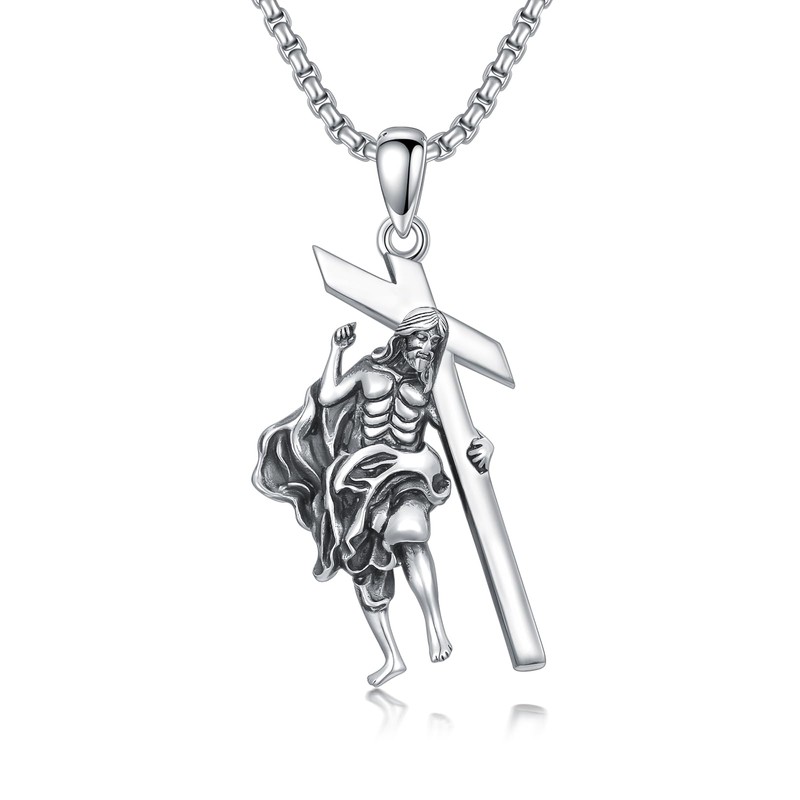 - 【MATERIAL】Jesus Cross jewelry is made of 925 sterling silver and add Oxidation process, no nickel, no lead, no cadmium and hypoallergenic. It won't turn your skin green or black!