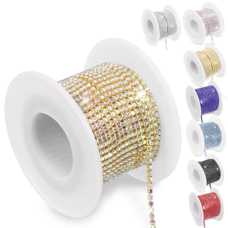 - 💎 Quantity and Size ------ You will receive 1 roll of 10 yards of 2mm AB Color crystal rhinestone diamond chain jewelry, measuring 9mx2mm, enough length to meet your daily use, shiny and beautiful chain jewelry that can be used to decorate various items.