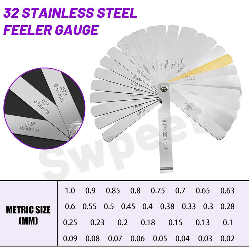 - ❣ Foldable 32 Blade Feeler Gauge: Made of high-quality steel, feeler gauge is wear-resistant and has nice strength, features nice precision, strength and hardness. The specification of every blade is clearly marked with laser technology (marked with both metric and imperial units), which makes it convenient to identify and choose the suitable one.