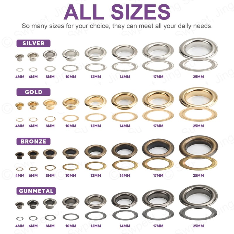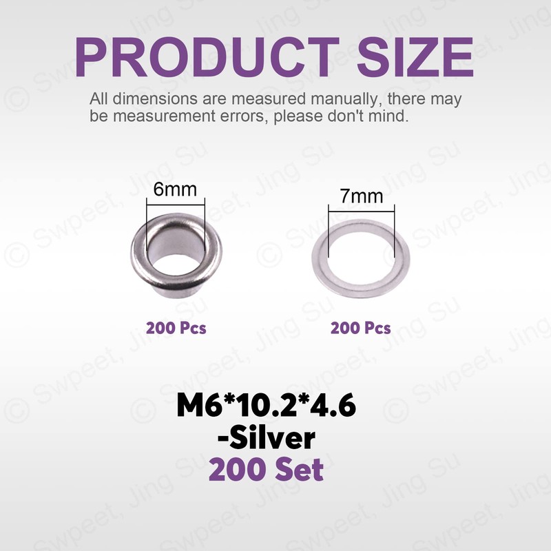Swpeet 200Pcs - 100Sets 9/16" (14mm) Hole Sliver Grommets Thicken Metal Grommets Eyelets Grommet Kit, Metal Eyelets Kits Grommets Eyelets for Repairing Canvas, Leather, Curtains (6mm)