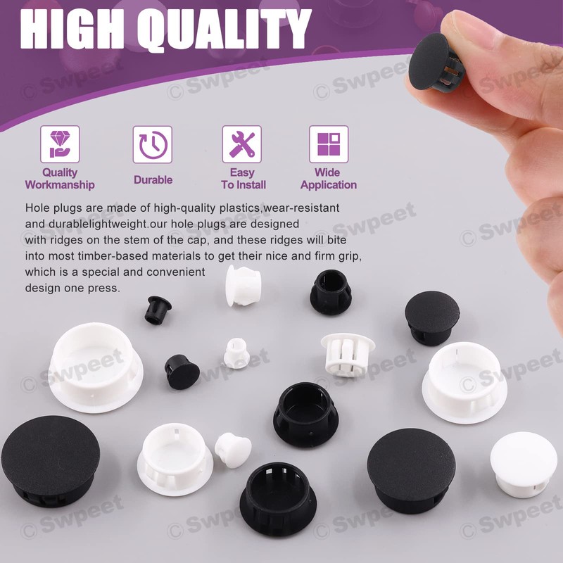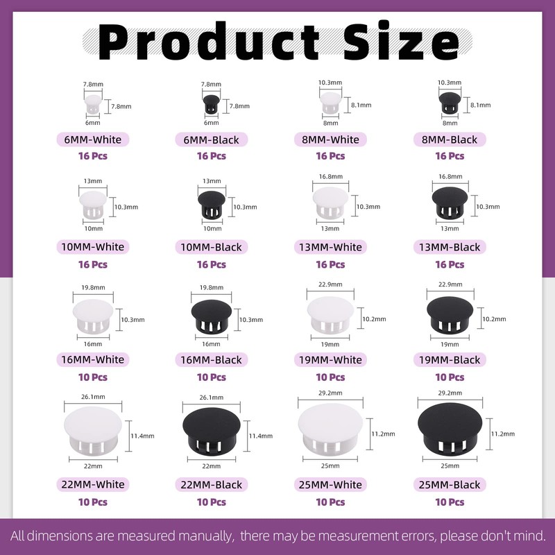 - 🌸【 What You Get 】 ---------- In this kit, You will get 208Pcs 2 Colors 8 Sizes Plastic Hole Plugs Panel Hole Assortment Kit, Including black and white. Totally 209Pcs Plastic Hole Plugs are classified in an organizer case for easy access to the right size and replacement. Sufficient quantities and different colors meet your daily needs.