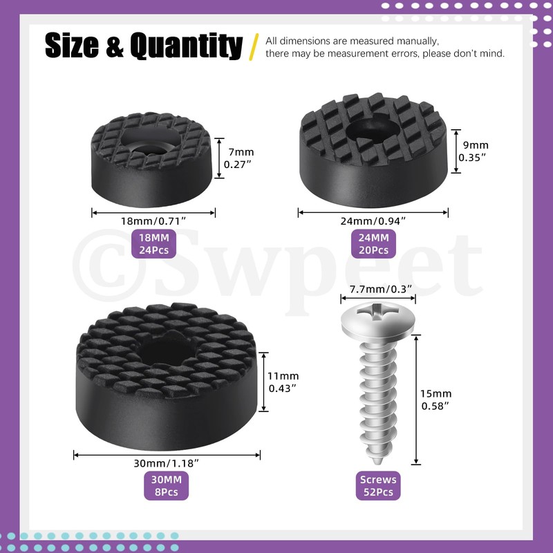 ✨ Quantity: 52Pcs black rubber feet pads and 52Pcs Screws