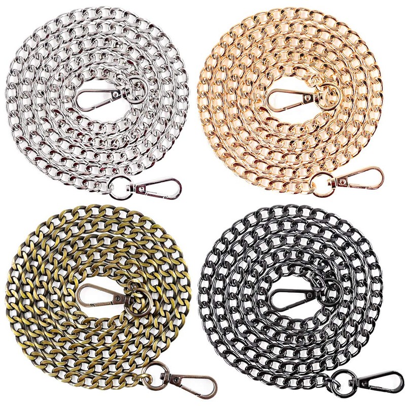Swpeet - Juego de 4 Correas de Cadena Plana de Repuesto de 47 Pulgadas con Hebillas, perfectas para Bricolaje, Bolsas de Mano, Bolsa de Mano, Bolsa de Mano, Bolsa de Repuesto (Oro + Plata + Bronce +