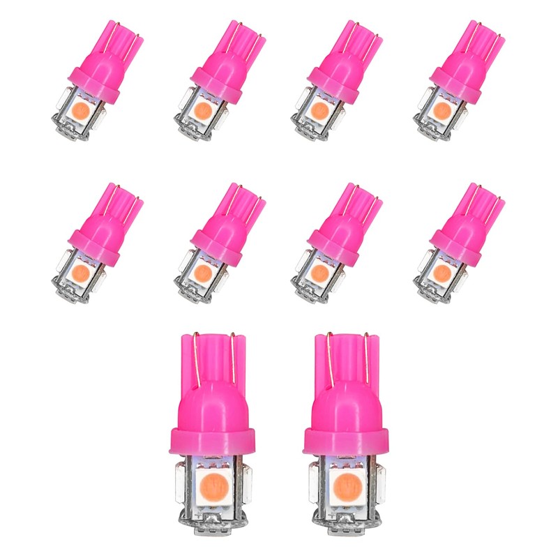SWQS 10PCS 194 LED Bulb Pink, Super Bright 5050 5SMD T10 LED Bulb, DC 12V Wedge Light Bulb Kit for Car Interior Lighting Door Dashboard Dome Map Trunk Light License Plate Lamp Courtesy Lights