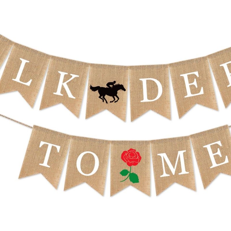 SWSATYW Burlap Talk Derby to Me Banner Kentucky Derby Party Decoration Horse Racing Mantel Fireplace Supplies