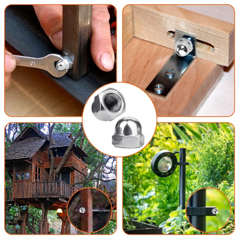 - Versatile Applications: SWTYExt M4 acorn nuts high form are common fasteners suitable for professionals, repair workers, and DIY enthusiasts. They are widely used for secure connections and component fastening in lighting, appliances, toys, machinery, automotive parts, communication equipment, household appliances, and furniture.