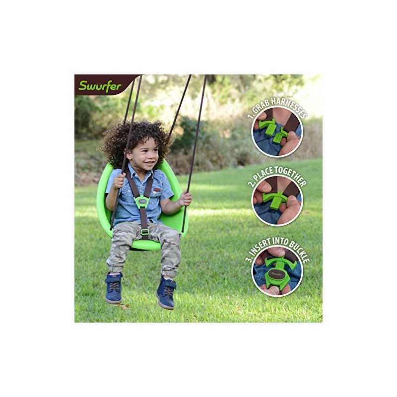 Swurfer Kiwi Toddler Swing – Comfy Baby Swing Outdoor, 3-Point Adjustable Safety Harness, Safe Quick Click Locking System, Foam-Lined Shell, Blister-Free Rope, Age 9 Months and Up, Green