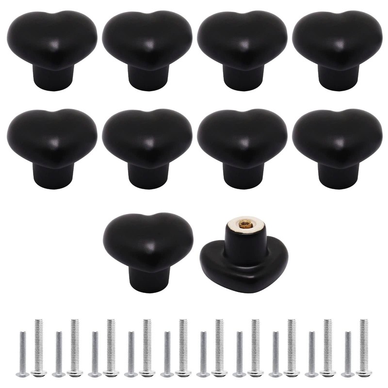 SWZHAI 10 Pcs Black Ceramic Cabinet Knobs, Heart Shaped Drawer Knobs Kitchen Cabinet Dresser Pulls Handles, Decorative Cabinet Door Knobs for Furniture Cupboard Closet