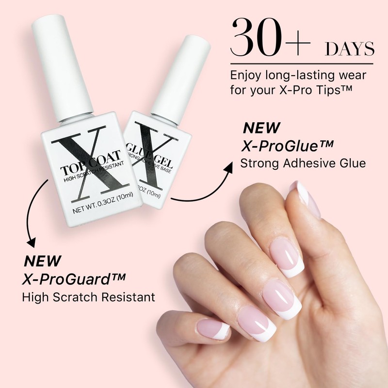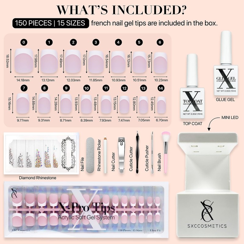 SXC Cosmetics French Tip Press On Nails Pink Series, XS Square X-Pro Tips Starter Kit