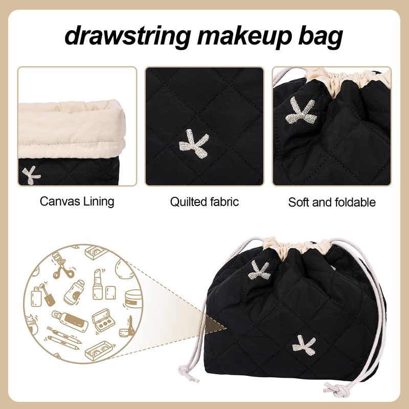SXS LACONIC Drawstring Quilted Makeup Bag, Cosmetic Pouch, Coquette Cute Organizer, Small Make up Bag for Purse, Women's Portable Travel Cosmetic Bag