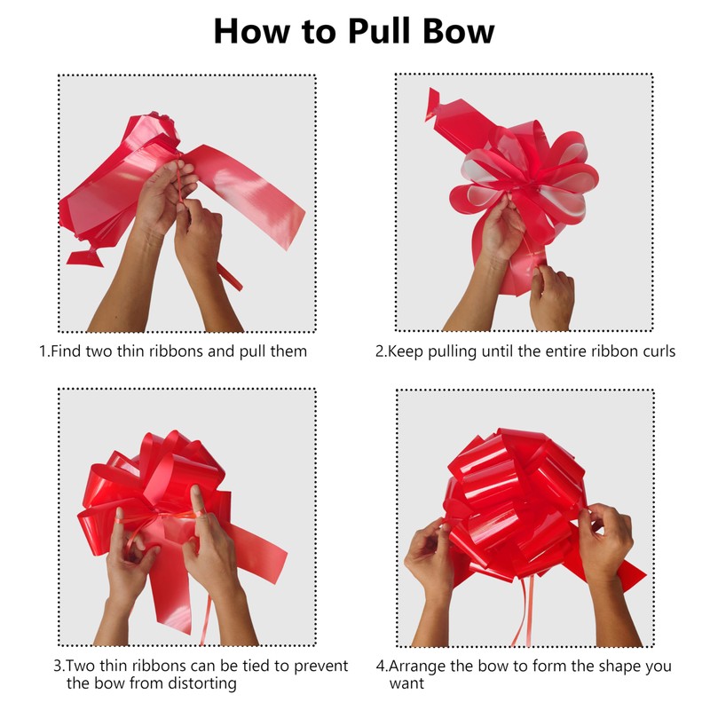 - Convenient Transportation and Storage: This large pull bow is flat packed, easy to carry and store, can be assembled effortlessly with just two ribbons, pull the ribbon and push the bow up to get a beautiful bow, perfect for beginners.