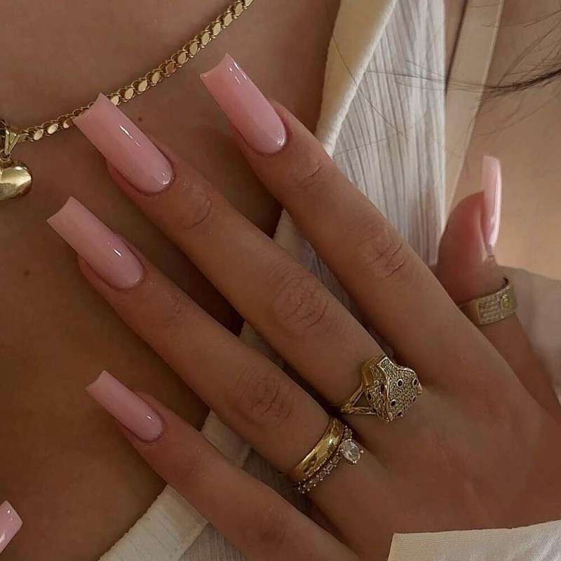 SXVME Pink False Nails Long Square, Acrylic Press on Nails Long Medium Coffin, Glossy Gel Fake Nails Press on, Solid Color Square Tip Nails Stick on Nails For Women Daily Wear, 24 Pcs