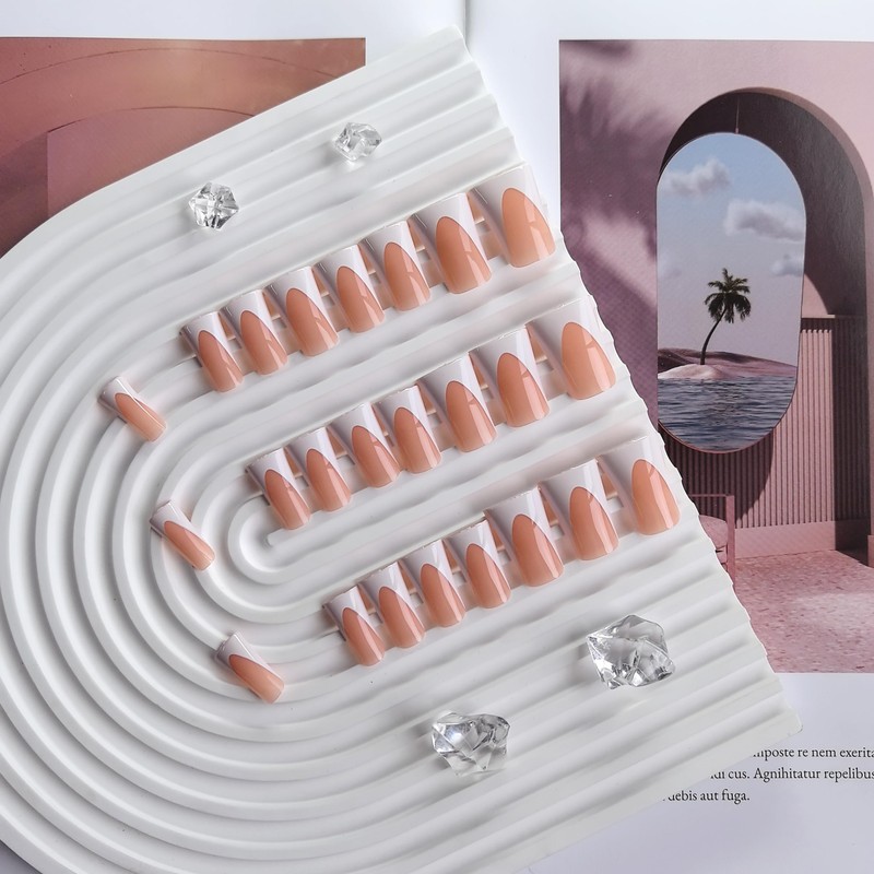 - All-In-One Summer Nails Kit, No Guesswork: Get 24 white french tip false nails medium length in 12 sizes for a custom fit every time. Comes with nail glue, adhesive tabs, nail file, cuticle stick, alcohol pad. Everything you need for a perfect white fake nails duck shape mani in one box
