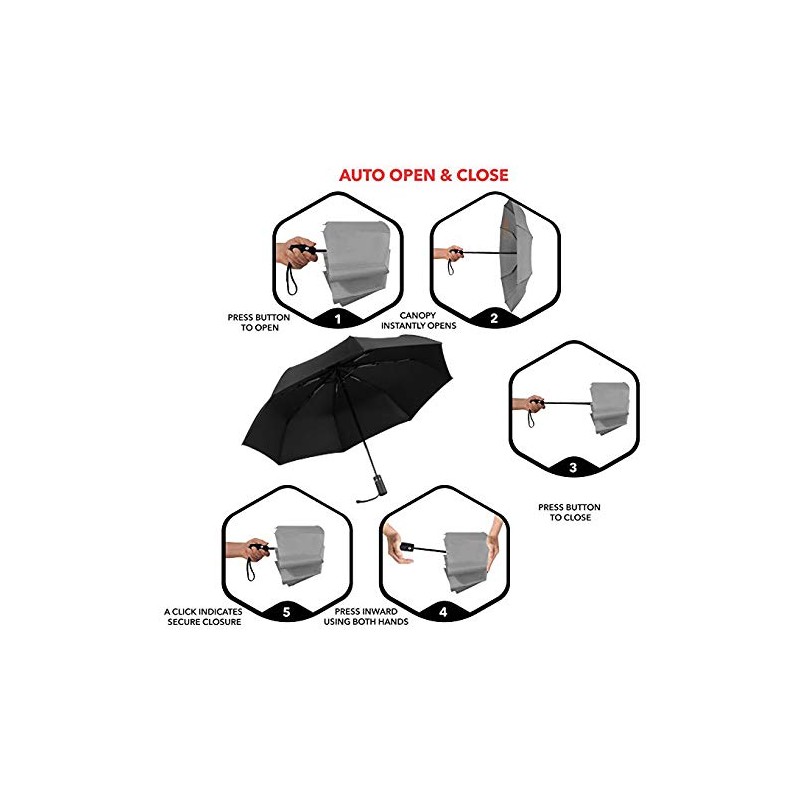 - Premium quality, stainless steel, ultra-slim,compact umbrella windproof, travel Umbrella with easy open /close; 8-rib fortified frame; fiberglass flex clip; chrome plated metal shaft.