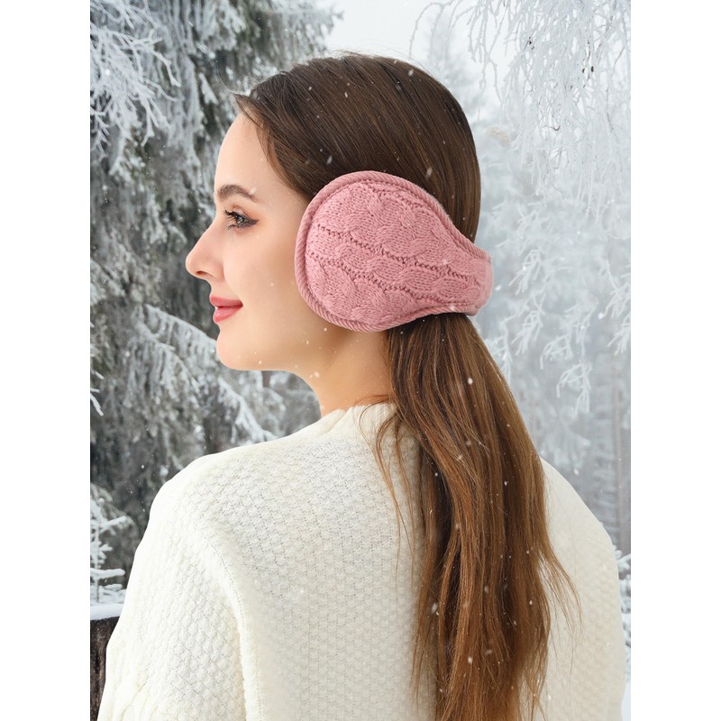 sy soul young Ear Muffs for Winter Women Warm Fuzzy Kint Earmuffs Foldable Cold Weather fur Ear Warmer Outdoor Unisex(Pink)
