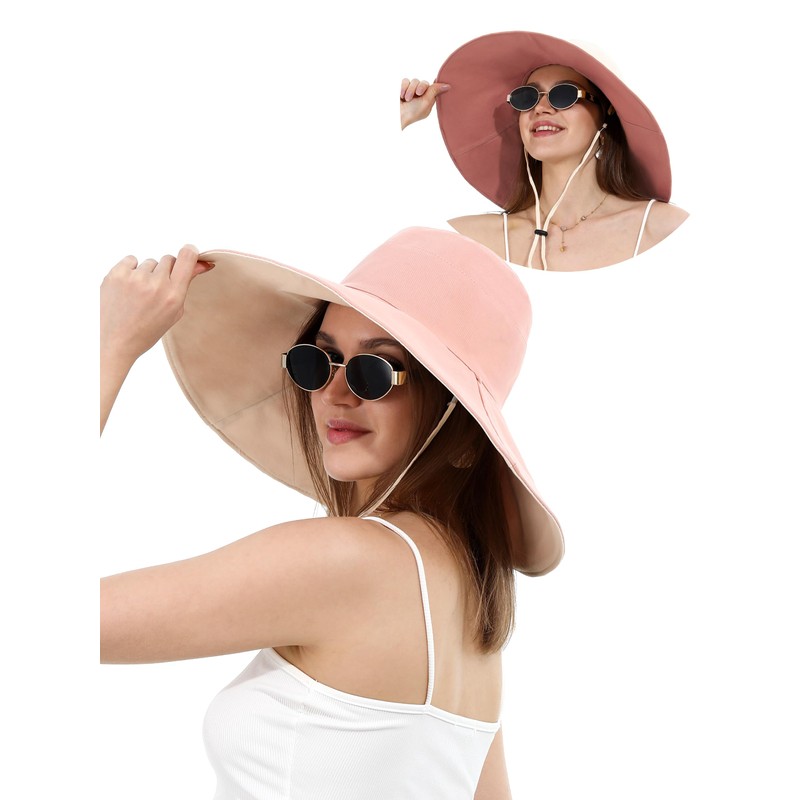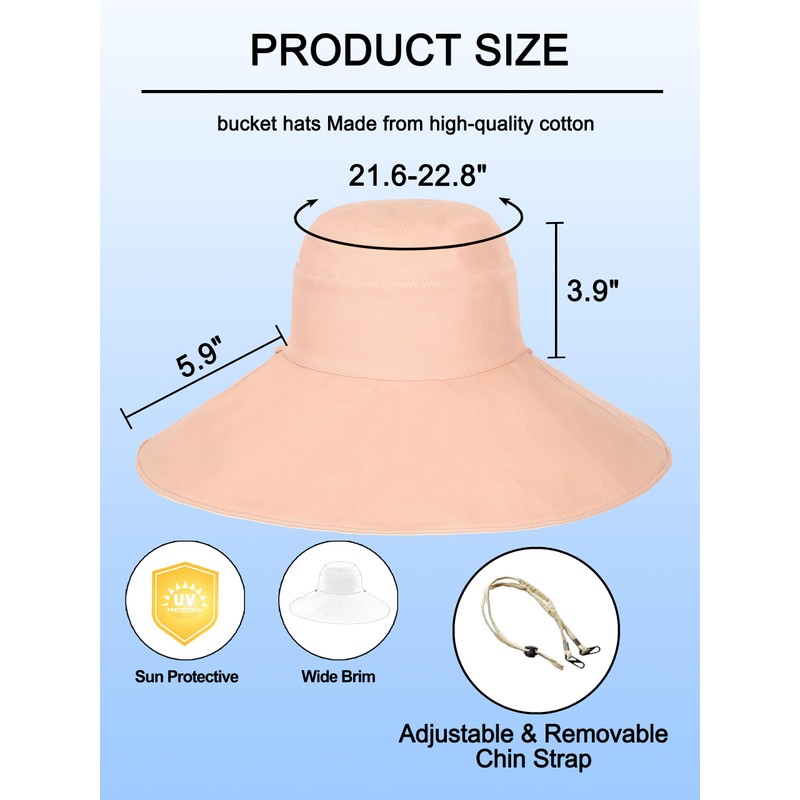 sy soul young Women's Cotton Bucket Hat Reversible Sun Hat with Ultra Wide Brim Foldable Beach Hat Summer Hat Fishing Hat UPF 50+, pink, Unit size