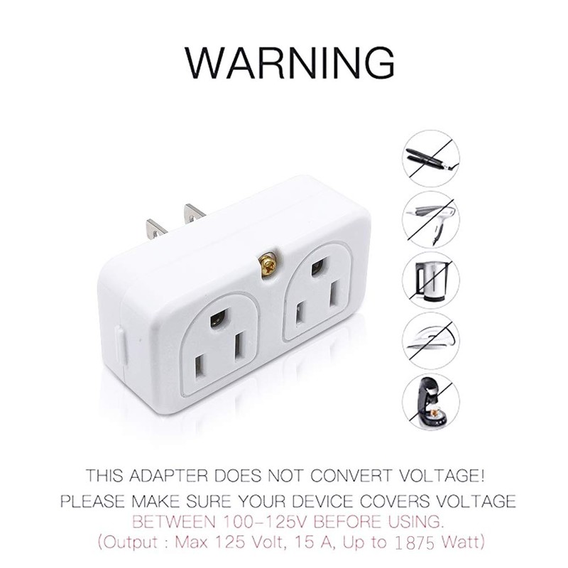 - Load Rating: Max 125 Volt, 15 A, up to 1875 watts, please make sure your device covers voltage between 100-125V before using.