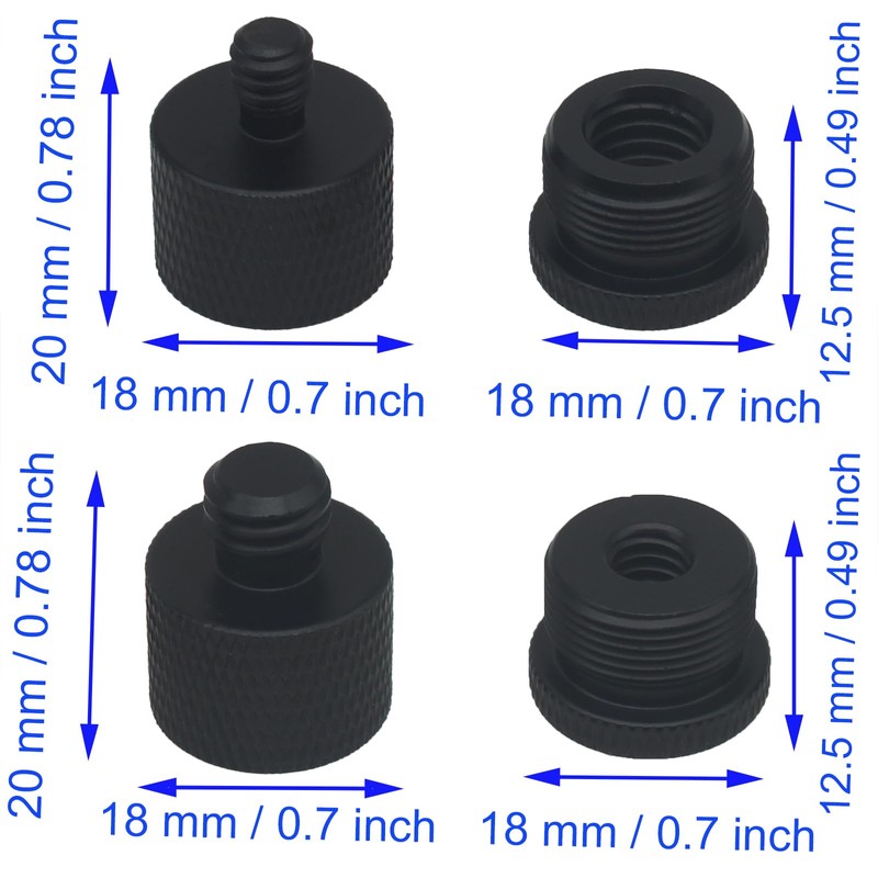 - Package included: 1pc 1/4 male to 5/8 female Mic Stand Adapter, 1pc 3/8 male to 5/8 female Mic Stand Adapter, 1pc 5/8 male to 1/4 female Female Mic stand screw adapter, and 1pc 5/8 male to 3/8 female Mic stand screw adapter