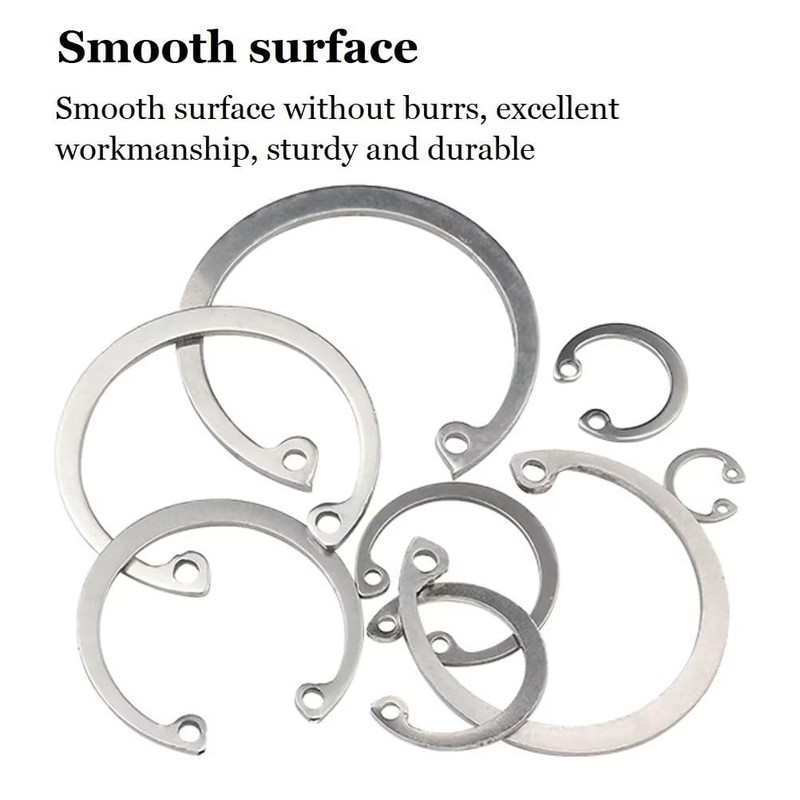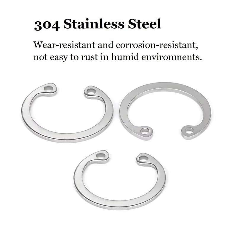 - Materials: C-clip snap rings are made of 304 stainless steel, rust-proof, corrosion resistant and difficult to bend or deform. Exquisite workmanship, smooth surface without burrs.