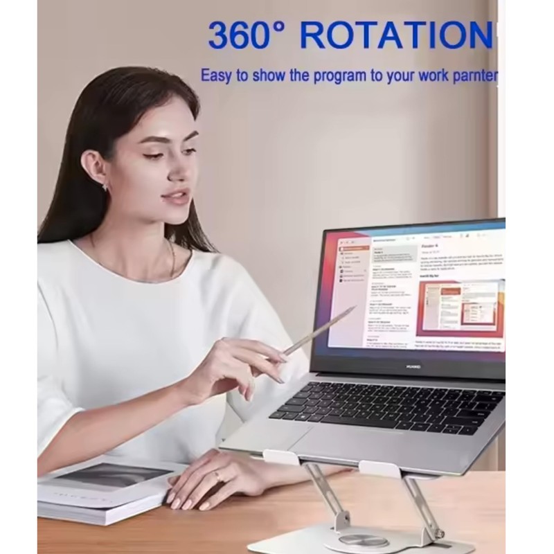 SYEDA Metal 360 Degree Rotating Stand Holder Laptop Stand Adjustable Height Swivel Laptop Riser Ergonomic Laptop Stand (Black)