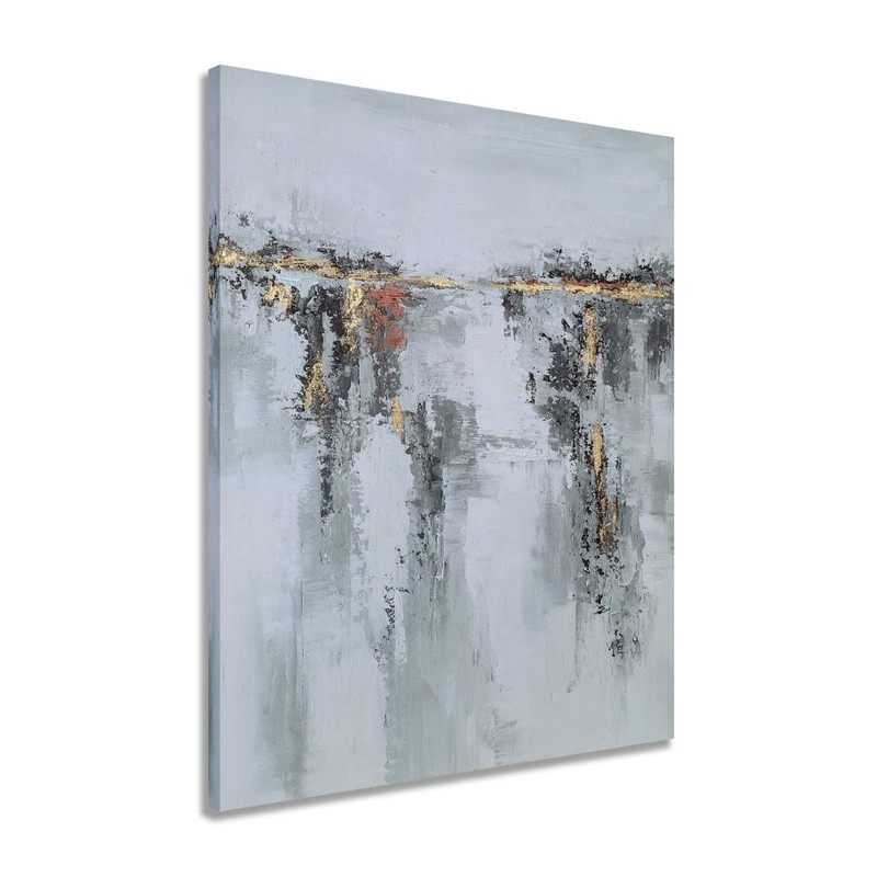 SYGALLERIER Hand Painted Large Abstract Oil Paintings with Gold Foil - Modern Grey and White Canvas Wall Art Pictures for Living Room Bedroom Bathroom Decor