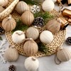 Syhood 12 Pcs Rustic Christmas Ball 2.36 Inch Neutral Farmhouse Christmas Tree Ornaments Shatterproof Hanging Burlap Fabric Textured Ball for Xmas Tree Party Garlands Wreath Home Decor